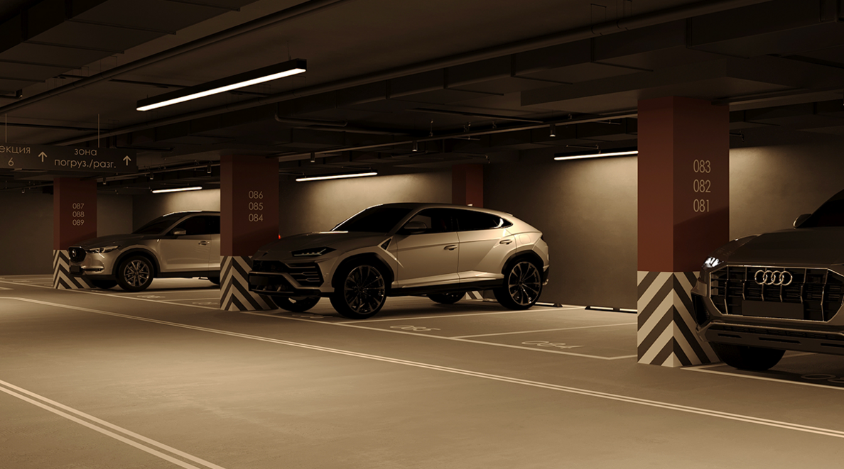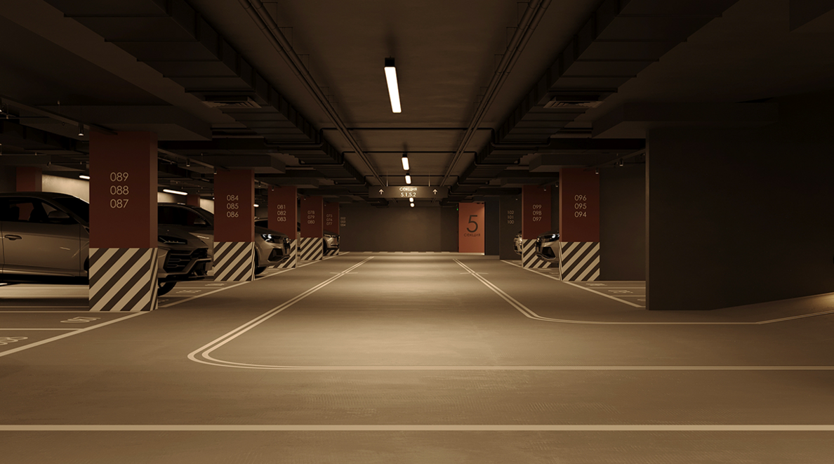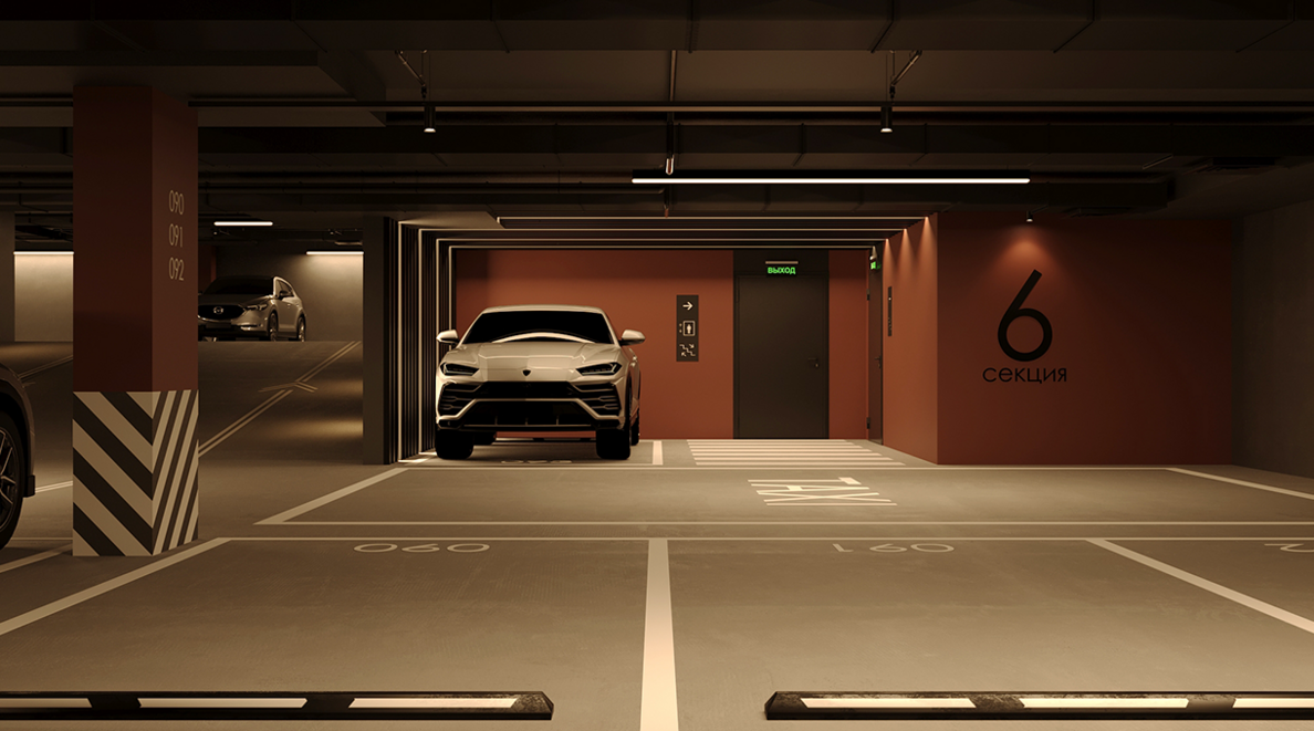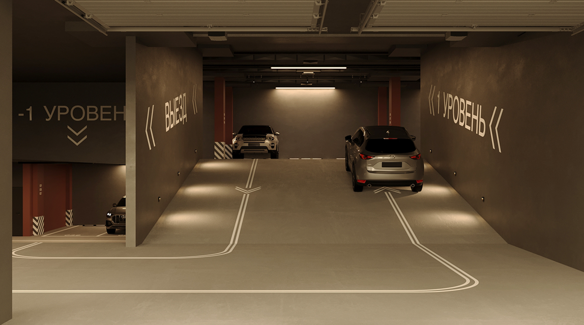 Машино-места для жителей предусмотрены в наземном паркинге, а для гостей — по периметру комплекса. Также будет располагается лаунж-зона с лежаками для отдыха жителей.