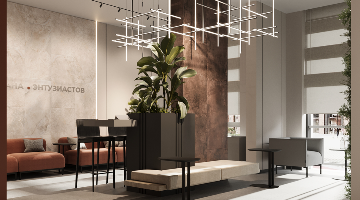 На двух гектарах земли разместился камерный жилой комплекс «Страна.Энтузиастов», где всего два дома, приватные дворы и паркинг для жителей. Прямо под окнами квартир расположилось зелёное полотно городской гостиной, которая за пределами комплекса плавно переходит в Эльмашевский парк. Переменная этажность создает комфортную для человека среду без давления высотных зданий. А открытые балконы отсылают к авангардной архитектуре 30-ых годов, которая часто встречается в Екатеринбурге.