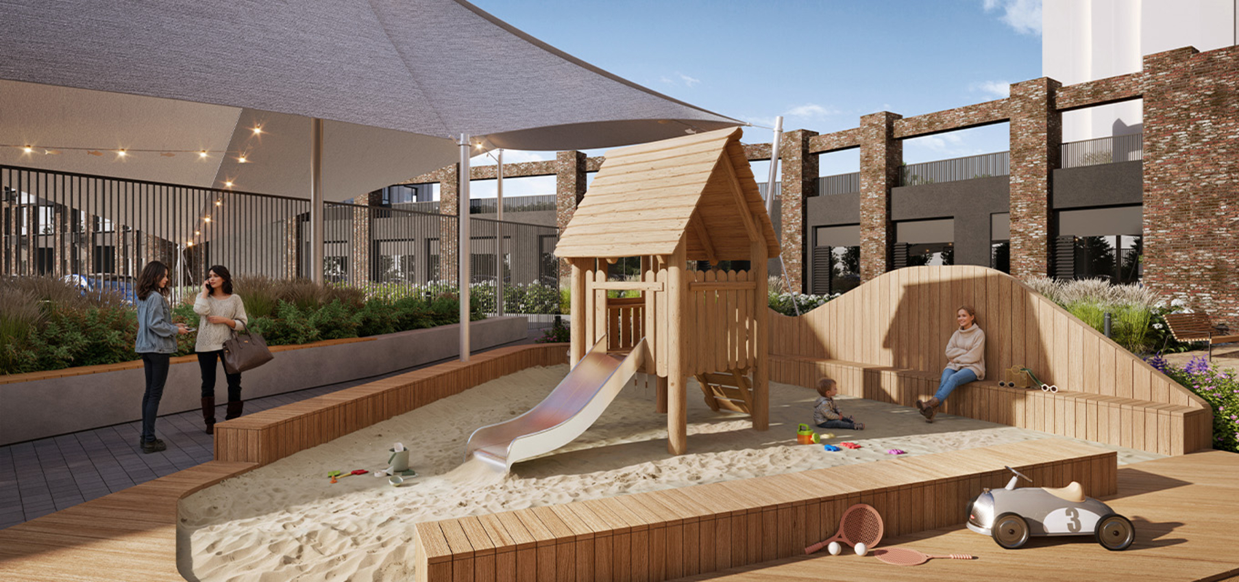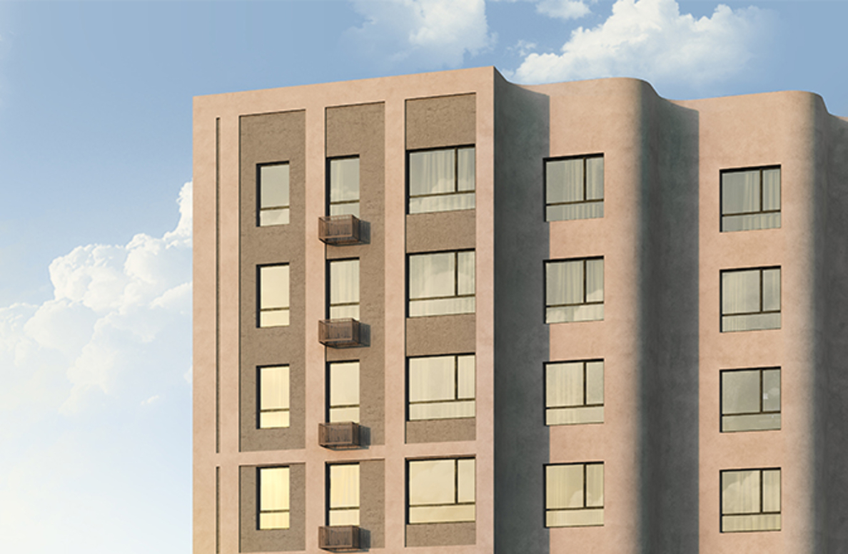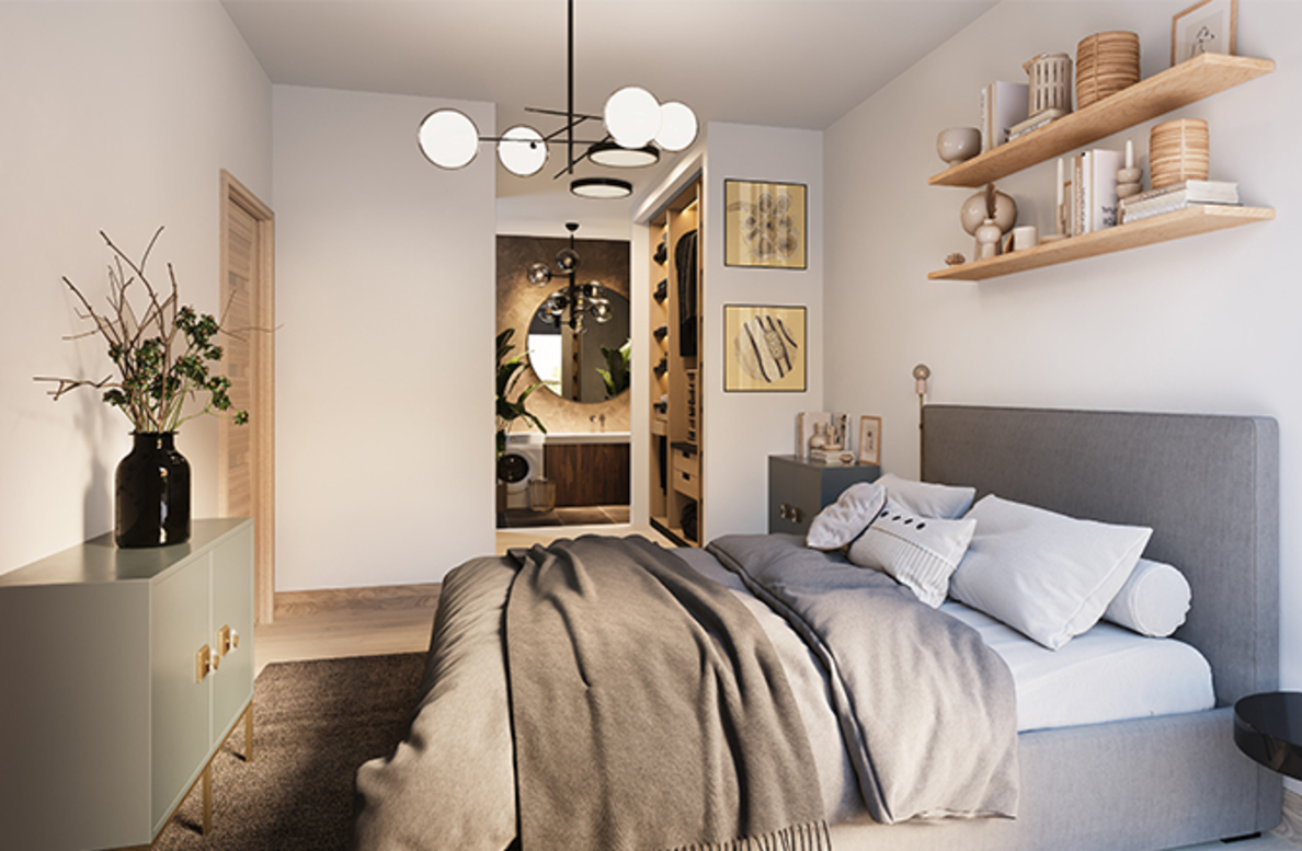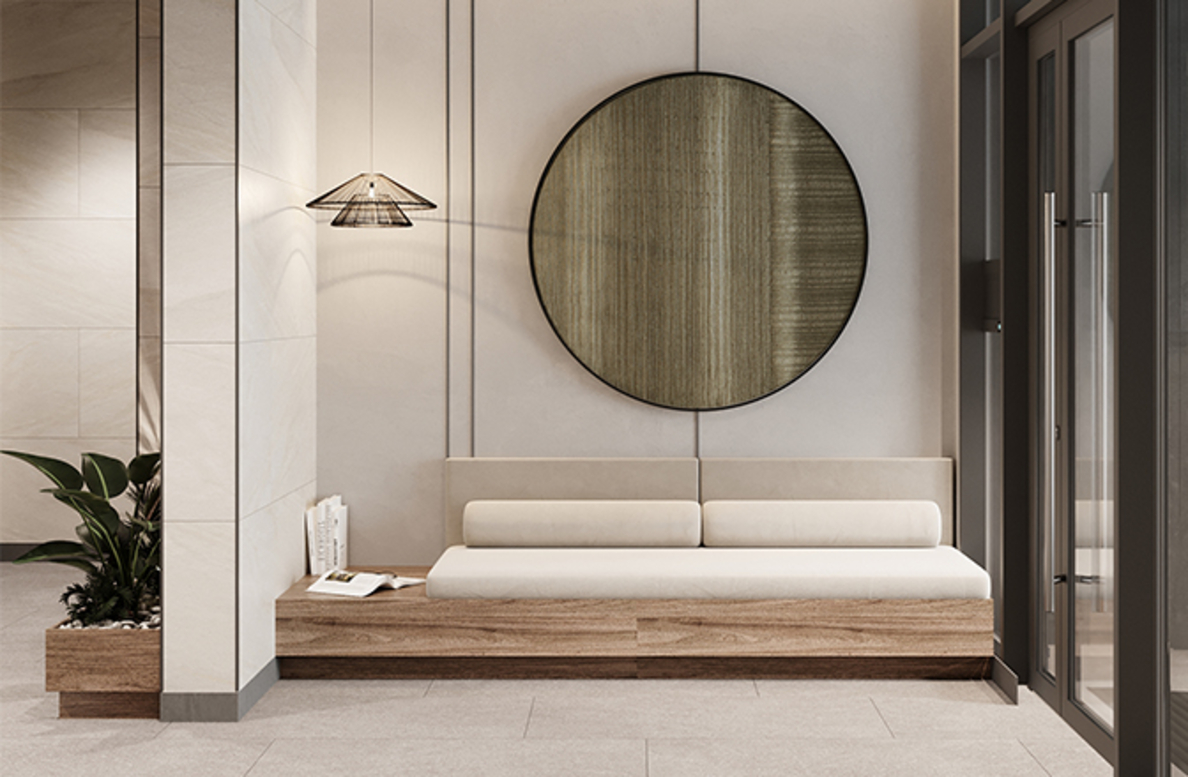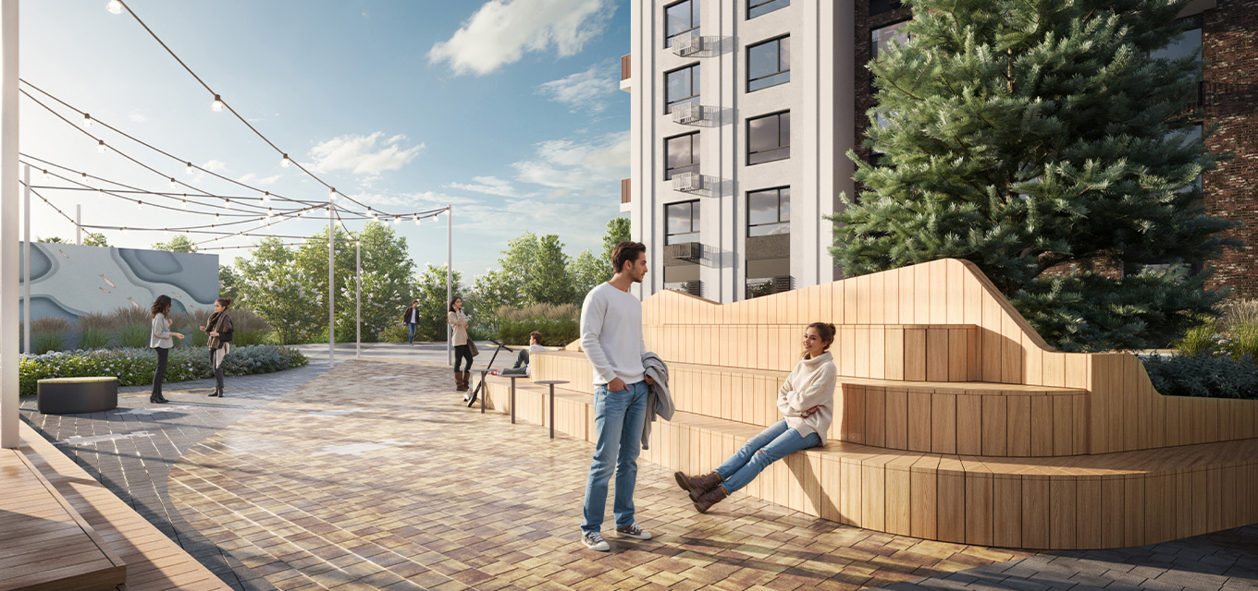 В архитектурной концепции проекта воплощено взаимодействие природы и цивилизации. Облицовка из кирпича в сочетании с окнами и полукруглыми балконами создают динамичный образ, созвучный потоку речных волн. А натуральные цвета фасадов и акцентные терракотовые вставки напоминают ландшафт песочного берега. Основная идея — создать индивидуальную архитектуру, выделяющуюся среди окружения. Массинг из французских балконов и архитектурная подсветка придают фасадам пластику, а также акцентно выделяют квартал. Облик дома мы разнообразили панорамным остеклением и архитектурной подсветкой.
