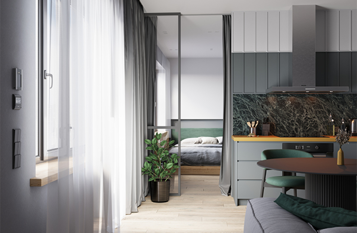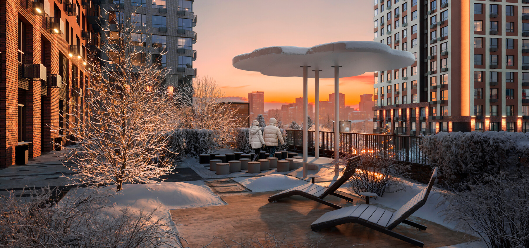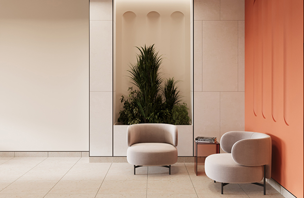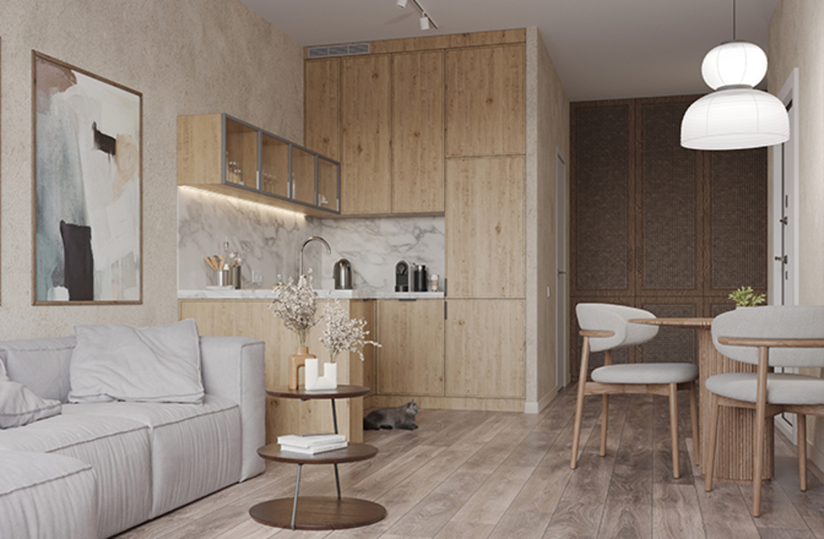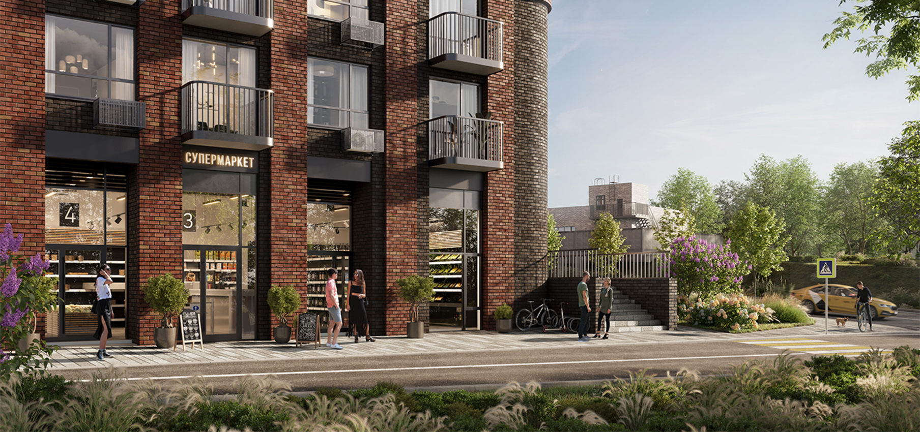 Архитектурная концепция представляет собой разомкнутый квартал с акцентной башней-доминантой. Цветовая палитра проекта представлена в бежево-терракотовых оттенках. Пластику фасадам придают сочетание чётких линий со скруглёнными формами, террасы, угловое остекление, массинг добавляют открытые балконы. Чередование фактур отделочных материалов создает визуальную ритмичность фасада, придавая ему уникальность и глубину, подчёркивая каждую грань архитектурного облика.
