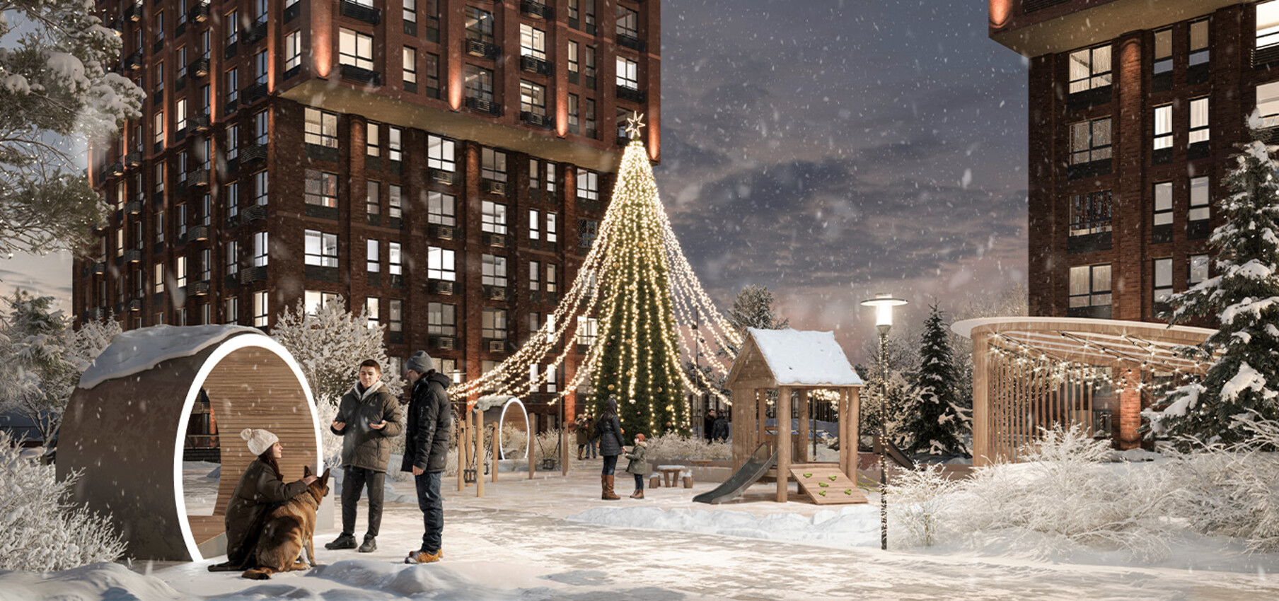 Лаконичная отделка фасадов, концептуальная ночная подсветка, парадные с выходом на улицу и во двор — вы оцените преимущества домов с первых минут экскурсии по микрорайону. Уникальная архитектура со смещёнными осями выделяет комплекс на фоне окружающей застройки, завораживая своей монументальностью и эстетикой.