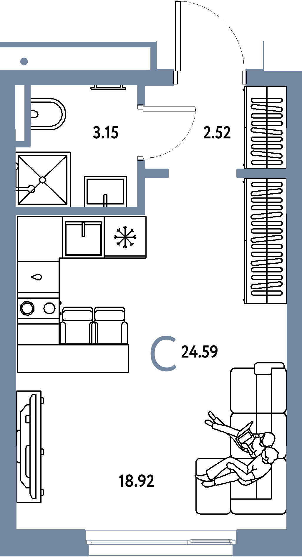 ЖК "Страна.Прибрежная"-Студия 24.59 м²